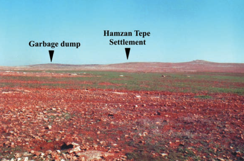 Bei Untersuchungen in Hamzan Tepe im Jahr 2000 wurden in den Fels gehauene Becken und zahlreiche Feuersteinwerkzeuge entdeckt. Diese Funde belegen, dass die Stätte sowohl im Altpaläolithikum als auch im präkeramischen Neolithikum besiedelt war. Zudem wurde eine T-förmige Säule gefunden, die auch von Nevali Çori und Göbekli Tepe bekannt ist. Eine erneute Untersuchung im Jahr 2010 förderte weitere, von Schatzsuchern ausgegrabene, runde architektonische Überreste zutage. Die Siedlung Hamzan Tepe liegt etwa 600 Meter über dem Meeresspiegel bei 0°482’41″50″ Nord-Süd (X) und 0°410’42″41″ Ost-West (Y). Sie wurde auf Felsgestein in der Gebirgsregion des Fatik-Gebirges errichtet (Abb. 1). In dieser wasserarmen Region finden sich zahlreiche Kalksteine, die durch Erosion entstanden sind.